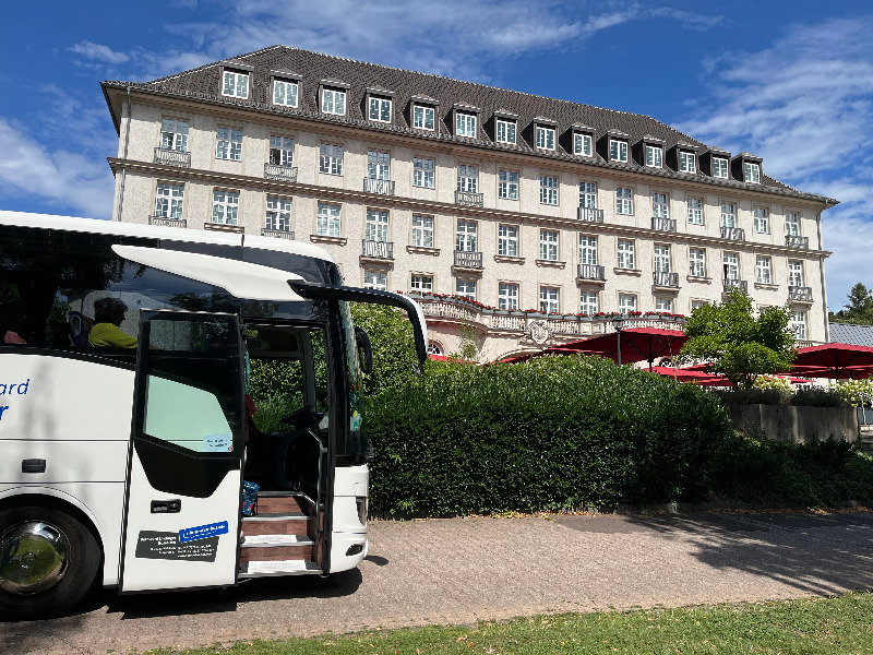 Fahrt in gepflegtem Reisebus mit WC, Klimaanlage und großem Sitzabstand.